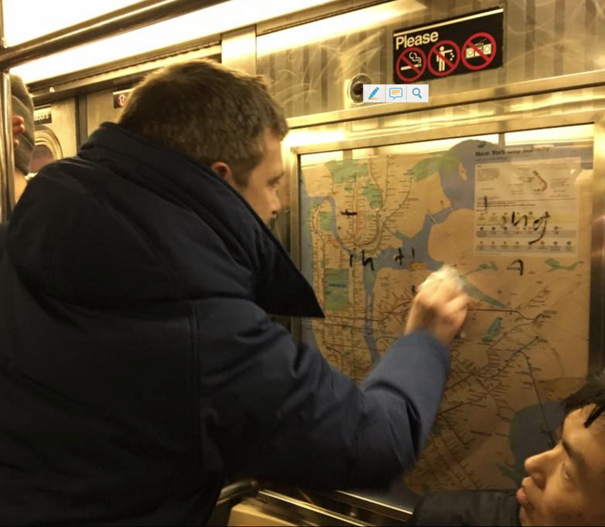 Passengers on NYC Subway Work Together to Remove Nazi Grafitti